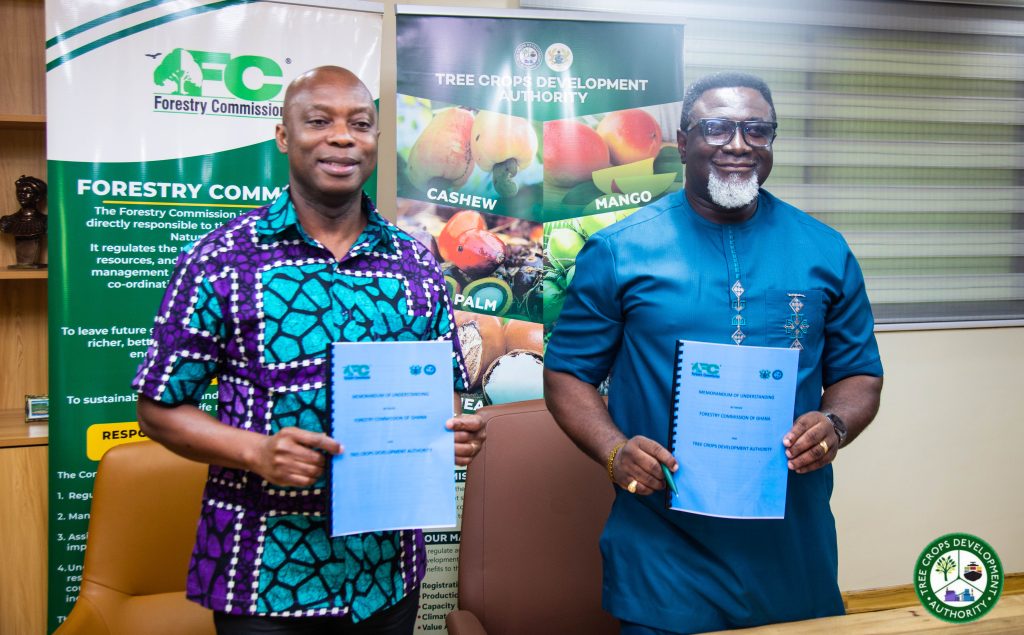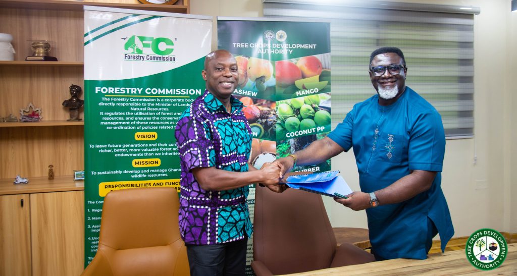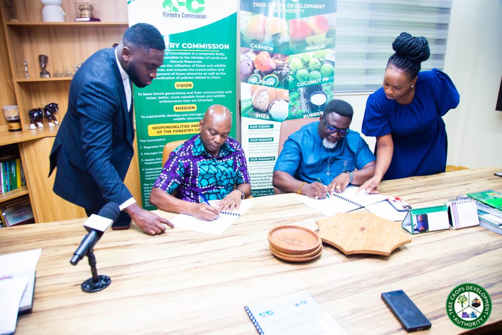 The Tree Crops Development Authority (TCDA) has signed a Memorandum of Understanding (MoU) with the Forestry Commission to leverage the Commission’s nationwide checkpoint infrastructure to enforce regulations governing the movement of tree crop commodities across Ghana.
